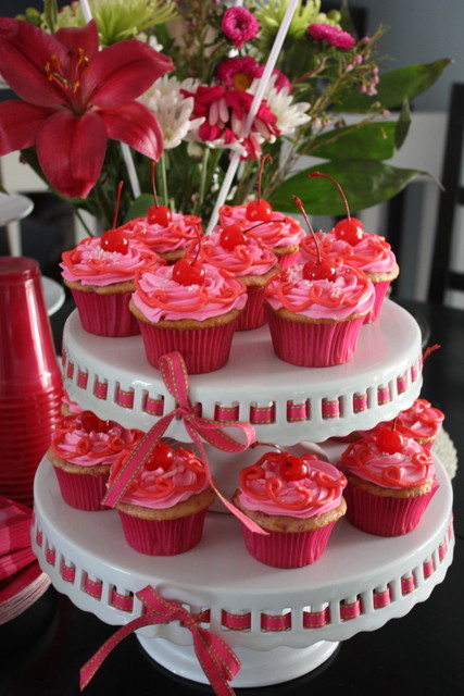 Fresh Strawberries swirled into the strawberry batter. They were delicious...I mean Pinkalicious!